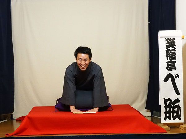 神保町・らくごカフェでは「餅屋問答」を演じた(2016年2月)。