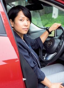 パワートレイン開発本部 走行・環境性能開発部 伊東景子氏。1980年生まれ、2006年入社。デミオ、アクセラ、CX-3などを担当してきた。1児の母。「時速200kmテスト走行。妊娠中も試作車のテストを続けました」