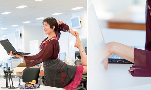 【写真左】サイバーエージェント 役員秘書 長嶋陽子さん/新卒で入った会社で社長室の秘書見習いを1年半経験後、ロンドンに1年間語学留学。2004年、サイバーエージェントに中途入社。取締役副社長の日高裕介氏の秘書を務めて11年目。子会社のサムザップで総務業務を兼務する。【写真右】忙しくても1日1回は顔を見る。早く終わりそうな会議の後に待ち伏せも。