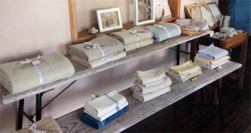 タイ・チェンマイにある「プラネッタ・オーガニカ」の直営店。商品の品揃えはシーツ類を中心に、着心地のよい室内着など少しずつ増えてきている。