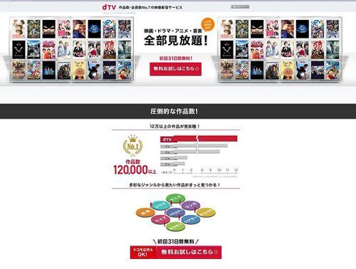 会員数・作品数No.1の動画・映像配信サービスdTV。月額500円(税抜)で、話題の映画、ドラマ、アニメ、ライブ映像、カラオケ、マンガなどのコンテンツが、テレビ、パソコン、スマホでいつでも楽しめる。「アイアムアヒーロー はじまりの日」「テラフォーマーズ/新たなる希望」など、大作映画連動のオリジナルドラマの配信も話題に。