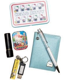 キティちゃんの大ファン。ハンコなどの小物入れとUSBホルダー。役員になったときのお祝いにもらったペンにもキティちゃんのチャームが。