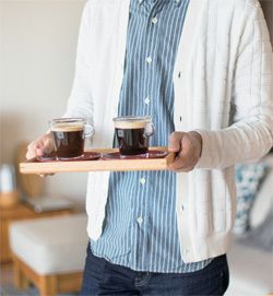 信明さんは大のコーヒー好き。愛用のコーヒーメーカーでいれるのは信明さんの役目。