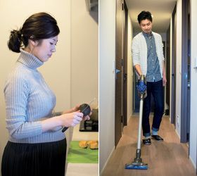 (左)「お願い」のタイミングも上手な理紗さん。「彼の様子をよく見て、疲れているときは頼みません」(右)掃除の仕方を理紗さんに注意されても、素直に納得するという信明さん。「相性がいいのかも(笑)」と意見が一致。