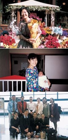 【写真上】初のフライト。記念に花束【写真中】子育てしながら働き続ける【写真下】客室乗務員として最高のポジションに