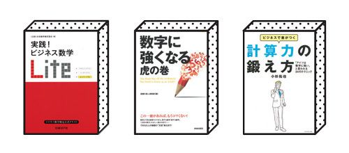 【左から】『実践! ビジネス数学Lite』日本数学検定協会(日経BP社)/『数字に強くなる 虎の巻』話題の達人倶楽部(青春出版社)/『ビジネスで差がつく計算力の鍛え方』小杉拓也(ダイヤモンド社)