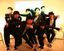 DAZZLEのメンバー8名。ファンのためのイラン海外公演報告会からのひとコマ。センターの長谷川を中心に、手前中央左から時計回りに、宮川、飯塚、南雲、渡邉、高田、荒井、金田(敬称略)。