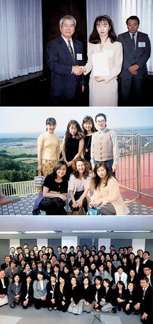 【写真上】オフィス・マネージャー第1号のうちの一人に。社長から辞令を受け取る【写真中】オフィス・マネージャー1期生と九州旅行【写真下】本社に異動し、複数のオフィス・マネージャーを統括