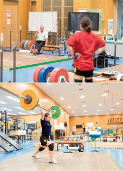 練習では、アップダウンのシンプルな動作を淡々と繰り返す。その様子を、父義行さんが、少し離れたところから温かい目で見守っていた。ほとんど口を出すことはなく、時折、軽いジェスチャーだけでアドバイスをする。うなずき合う姿に親子の強い絆が見えた。
