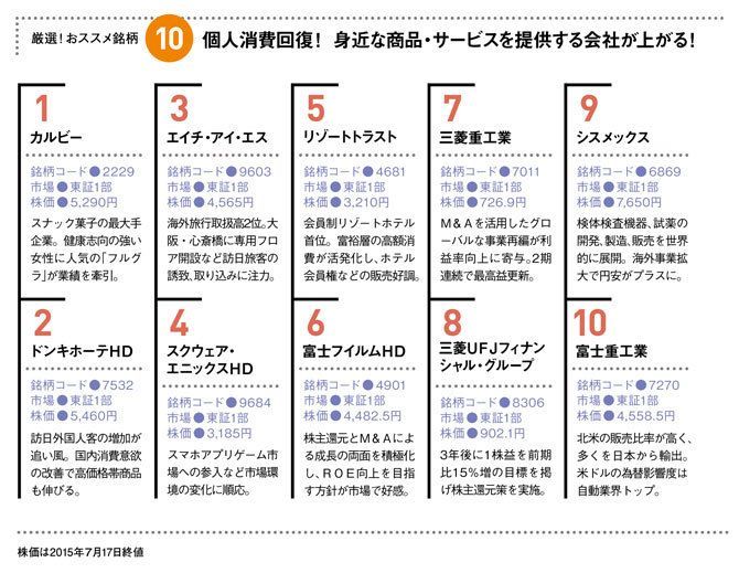 厳選! おススメ銘柄10 個人消費回復! 身近な商品・サービスを提供する会社が上がる!