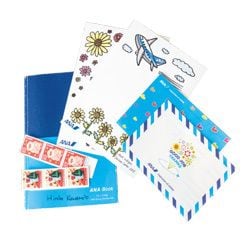 経営理念などが記された「ANA Book」とレターセット。お客さまへのお礼などをよく書くため、ポストカードや便せんと記念切手は常備している。