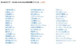 Kindle Unlimitedに読み放題コンテンツを提供している出版社一覧(クリックすると全体を表示)
