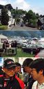 (上)丘の上にニュルブルク城がみえる。走行中の目印にもなっている。(中)長時間のレースになるため、キャンプをしながら観戦するファンが多い。(下)豊田社長にインタビューする筆者の稲泉連氏。