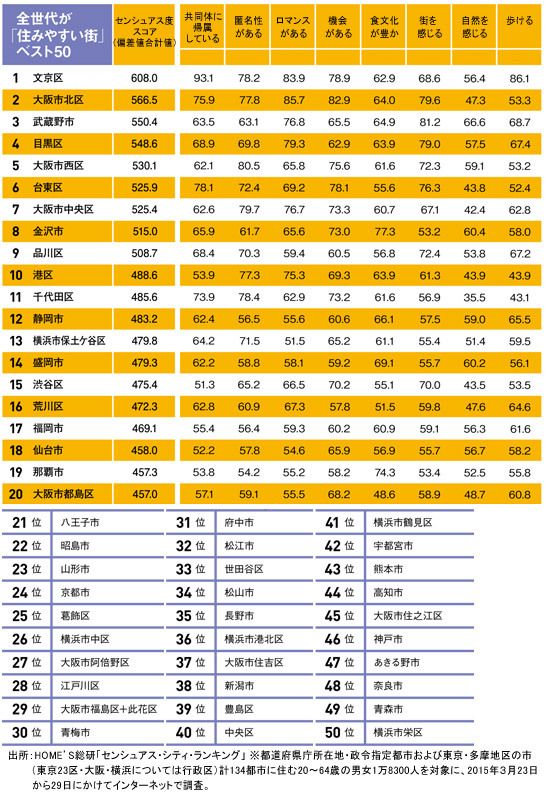 全世代が「住みやすい街」ベスト50