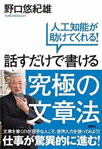 『話すだけで書ける 究極の文章法~人工知能が助けてくれる~』(講談社)。実際に野口氏が音声入力で1冊書き上げた本で、スマートフォンを使った音声入力の方法について、より詳しく語られている。