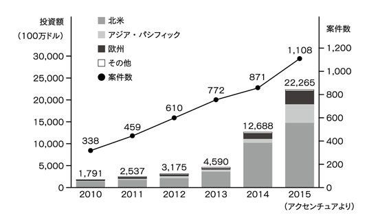 フィンテックへの投資額と案件数
