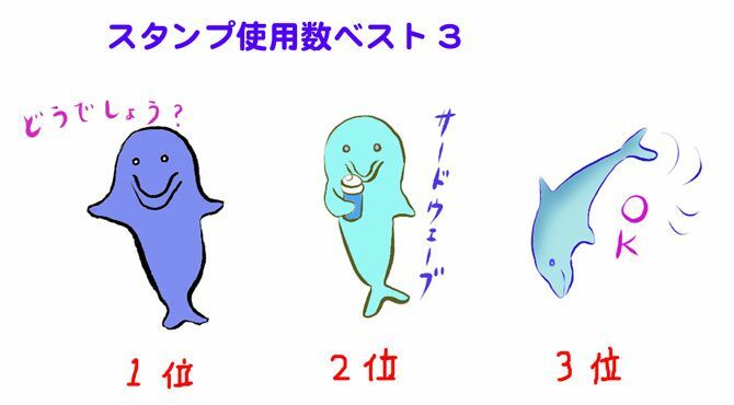 あまり売れていないスタンプですが、その中でよく使われているものベスト3です。了解とかOKは会話の中で使われる頻度が高いとか。サードウェーブは意外でした。