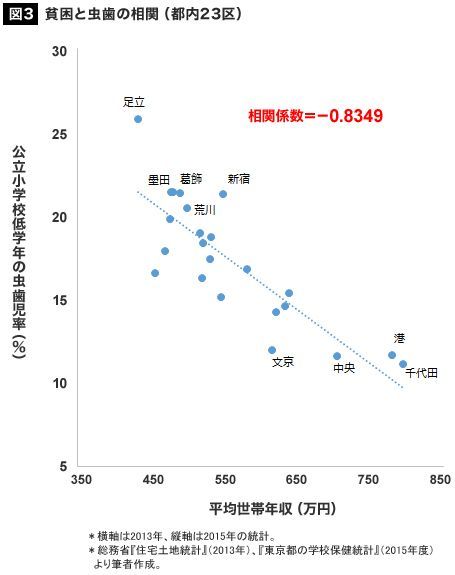 TOKYO虫歯率マップ 東部「真っ黒」都心部「真っ白」