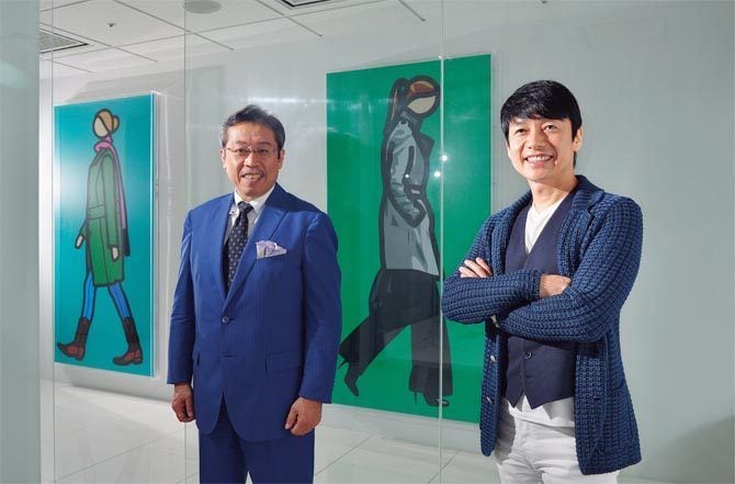 渋谷セルリアンタワー内の白を基調としたオフィス。至る所にジュリアン・オピーの作品が飾られている。新作の入手時や時節で展示替えが行われることも。