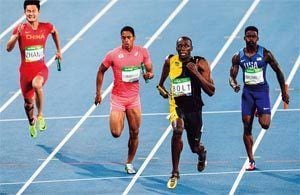 リオ五輪陸上男子400メートルリレーで日本は銀メダルを獲得。アンカーとして走ったのがドームのケンブリッジ飛鳥選手(左から2番目)だった。(時事通信フォト=写真)