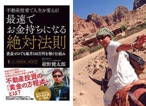 (左)紺野氏の著書『不動産投資で人生を変える!最速でお金持ちになる絶対法則――資産ゼロでも毎月100万円を稼ぐ仕組み』(ダイヤモンド社)(右)月のうち1週間はどこかしら海外を旅行している。所有不動産が自分のためにお金を稼いでくれる。