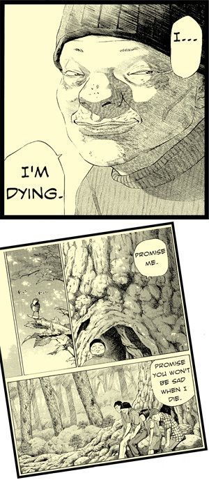 (上)死が近いことを告げる母親(下)そして、母親は「自分が死んでも決して悲しまないで」と語りかける/『Give My Regards to Black Jack』SHUHO SATOより