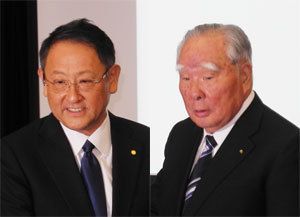 トヨタの豊田章男社長(左)とスズキの鈴木修会長(右)