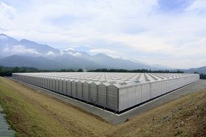 丘を上っていくと、広大な敷地に巨大な野菜工場が姿を現す。