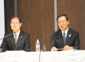 津賀一宏・パナソニック社長(右)