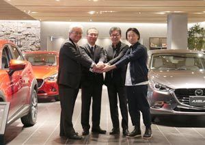 左より、稲本信秀・マツダ取締役専務執行役員、山口滋己・関東マツダ社長、前田育男・マツダ常務執行役員、谷尻誠・Suppose design office(店舗デザイン)