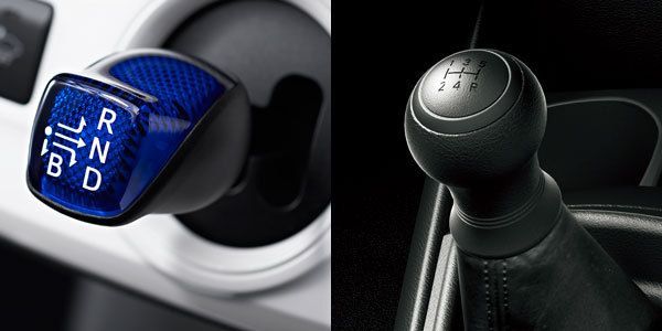 左が、最新型プリウスのシフトレバー。右は、カローラアクシオ(MT)のシフトレバー。
