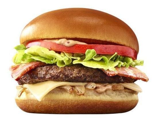 2016年4月発売「グランドビッグマック」(520円、単品)。「ビッグマック」の1.3倍の量のパティを挟んだハンバーガー。さらにパティの枚数を倍(4枚)にした「ギガビッグマック」も数量限定で販売された。