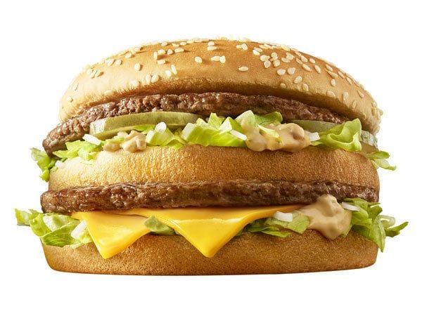 2016年4月発売「グランドビッグマック」(520円、単品)。「ビッグマック」の1.3倍の量のパティを挟んだハンバーガー。さらにパティの枚数を倍(4枚)にした「ギガビッグマック」も数量限定で販売された。