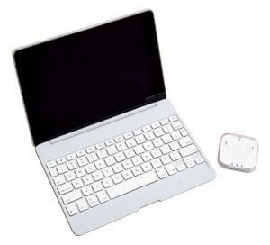 ノートパソコンとイヤホンは必需品。アメリカ国内の出張も多く、移動中に電話会議をすることも。