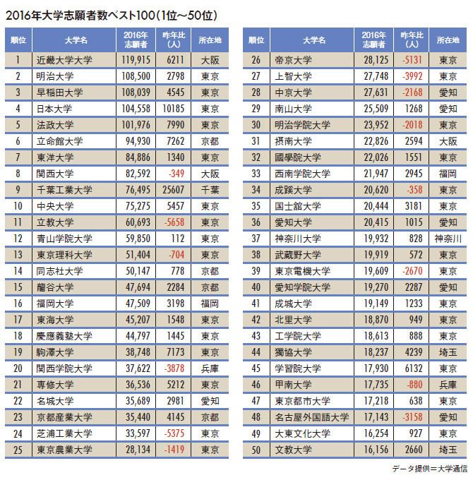 近大「志願者数」3年連続トップ!明治、早稲田が負けるワケ【志願者数ランキング100】