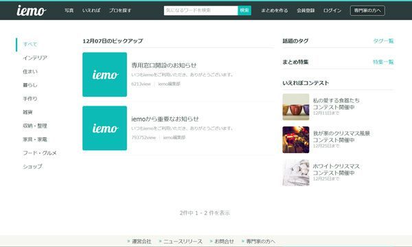 iemoのトップページ。現在すべての記事が非公開化されていること、専用窓口を開設したことを知らせる2本以外、すべての記事が非公開化されている