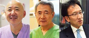 (左から)矯正歯科の専門医 三村 博氏、インプラントの先駆者 小宮山彌太郎氏、東京医科歯科大学教授 小野卓史氏