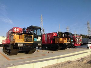 取水・注水ポンプ車(写真)や電源車など幾重にも安全対策が施されている。