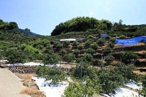 急峻な斜面で太陽をいっぱいに浴びるみかん