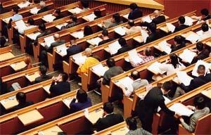 1月7日、小池百合子東京都知事の政治塾「希望の塾」は、今夏の都議選への候補者を絞り込むための筆記試験を行った。筆記試験は、論文(約1時間)とマークシート式の適性テスト(約2時間)。約1600人が受験し、この結果、300人程度が選抜される見込み。(写真=時事通信フォト)