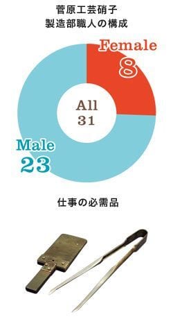 ●1991年多摩芸術学園卒業。写真スタジオで働いた後、92年菅原工芸硝子に女性職人として入社。2006年に班長に昇格。10年に東京都指定伝統工芸士認定を受ける。個展開催や、入選受賞履歴も多数あり。