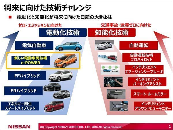 e-POWERの正式な商品企画がスタートしたのは2014年。しかし2007年から、社内有志による先行開発が始まっていた。電気自動車のリーフは2010年、ノートe-POWERは2016年に発売された。