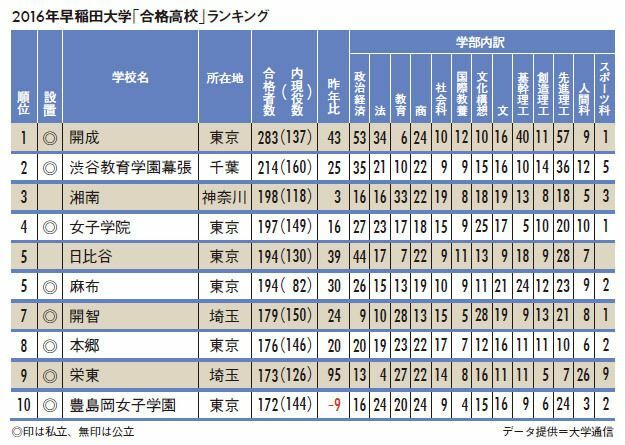 開成トップ283人!首都圏の中高一貫校が圧倒【早大合格ランキング】