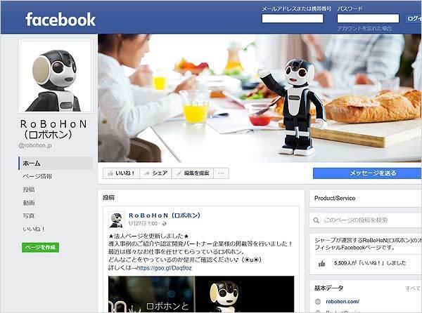ロボホンの公式Facebookページ。機能アップデートやイベントなど、最新情報が詳しく掲載されている。