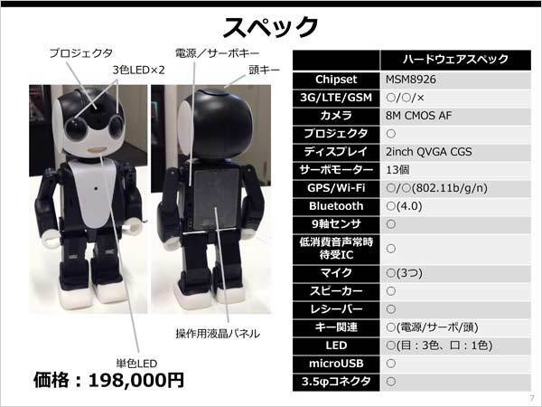 ロボホンはスマートフォンでもある。SIMロックフリー端末なので、シャープが提供する以外のSIMカード(nanoSIM)も利用可能。