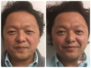 30種類の顔筋を整えて愛され顔に(左が施術後)