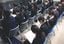面接を待つ学生たち。大卒の内定率は近年上昇している。(時事通信フォト=写真)
