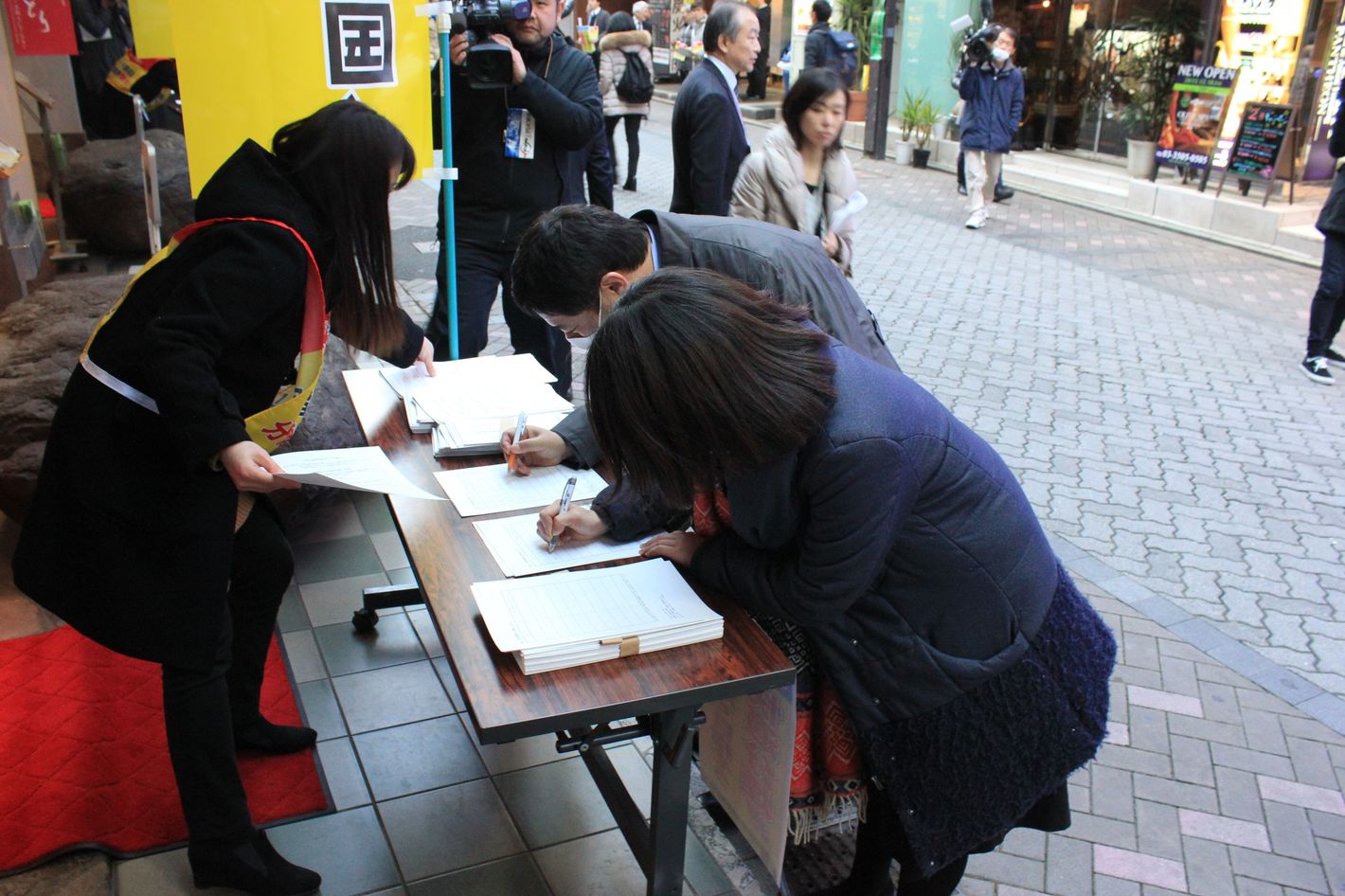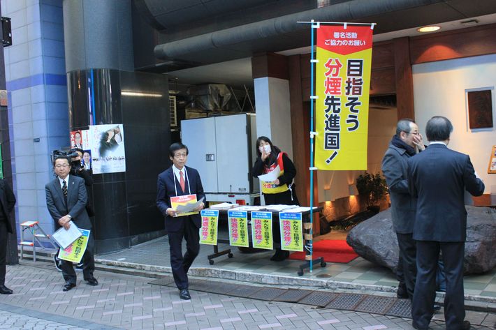 2月14日、東京・赤坂での「分煙への理解」を求める署名活動。