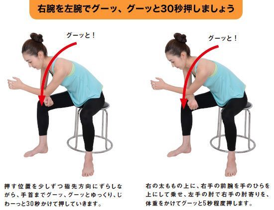 反対の腕も同じ要領でやりましょう。