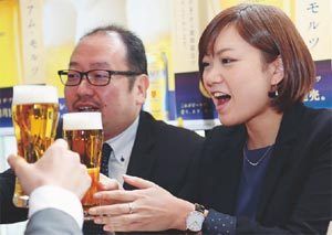 各企業も期待(ビール会社のプレミアムフライデーPRイベント/AFLO=写真)。